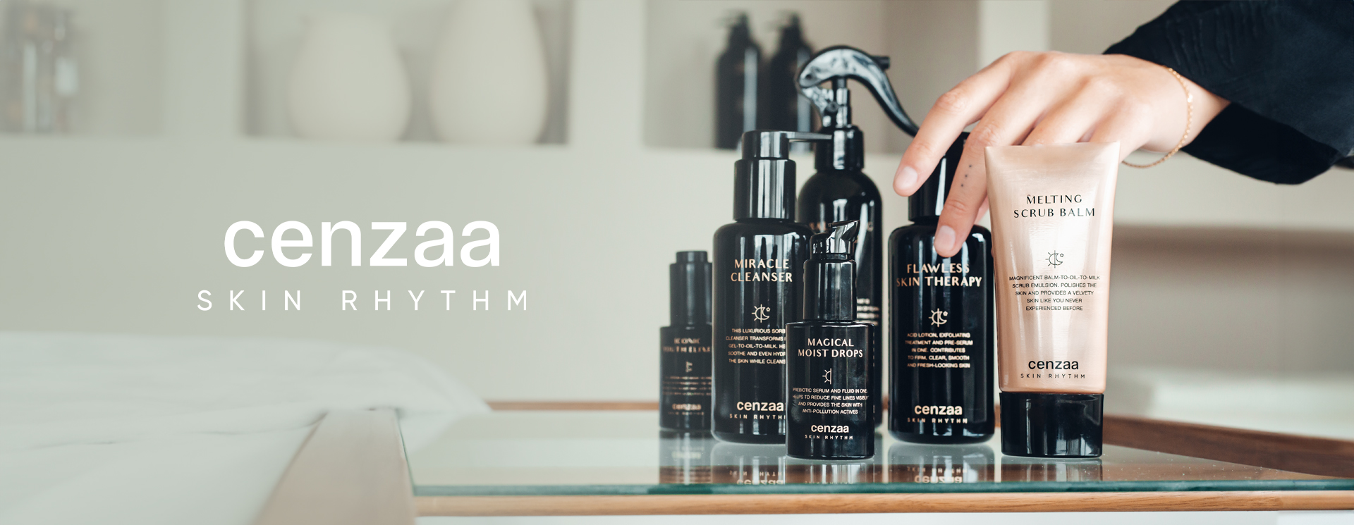 Skin Rhythm is een compacte limited edition skincare collectie van Cenzaa, gericht op anti-age, het verbeteren van de circadiane dynamiek van de huid en het in balans brengen van persoonlijk celritme.